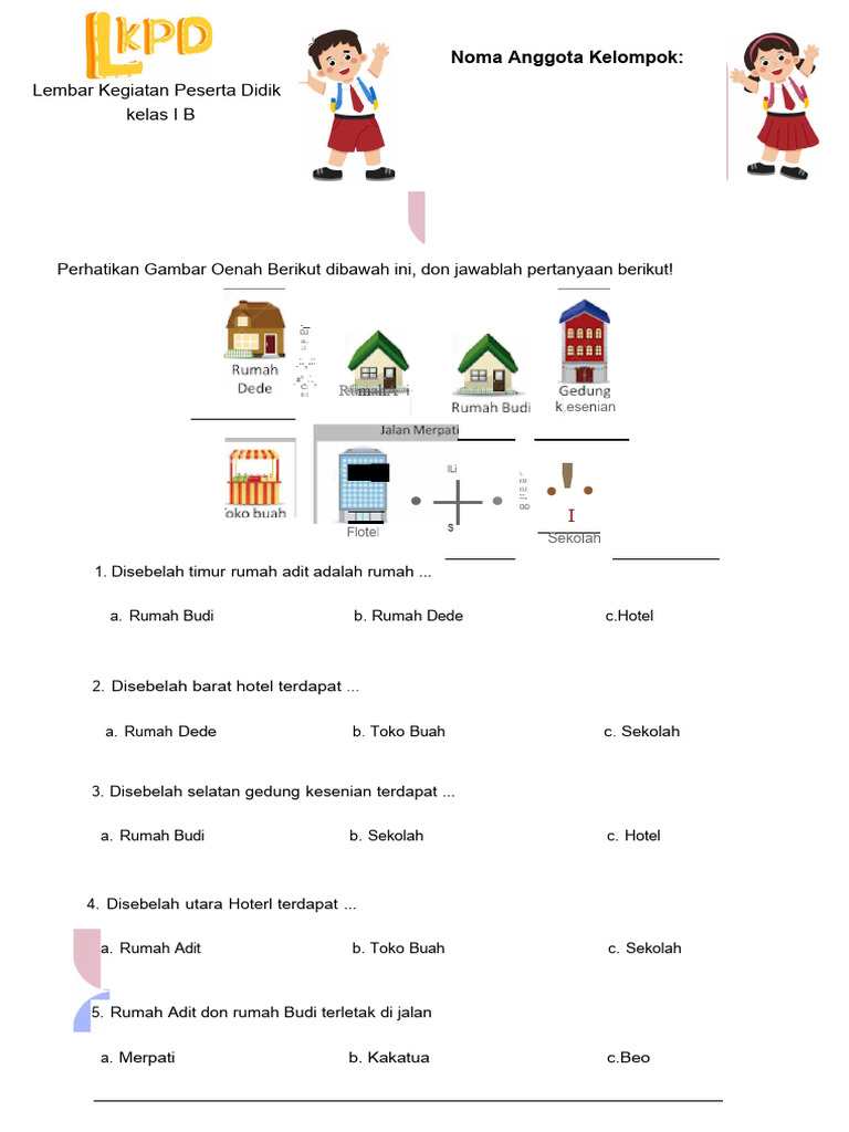 Penjelasan: Kelas Budi di sebelah Barat lapangan. Jika Budi keluar dari kelasnya (yang ada di Barat), maka ia akan melihat lapangan (yang ada di Timur) berada di sebelah kanannya.